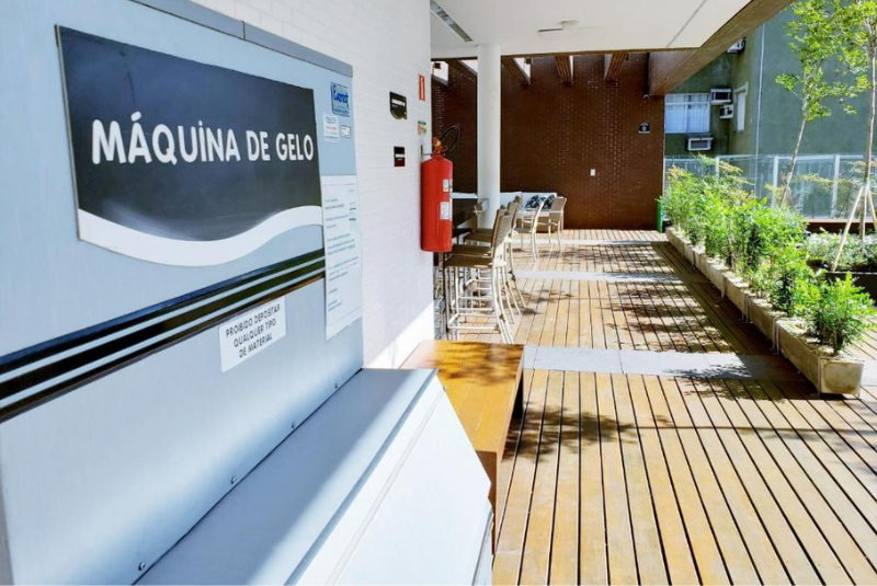 No quarto andar, há uma máquina de gelo exclusiva para refrescar suas bebidas a qualquer hora do dia.